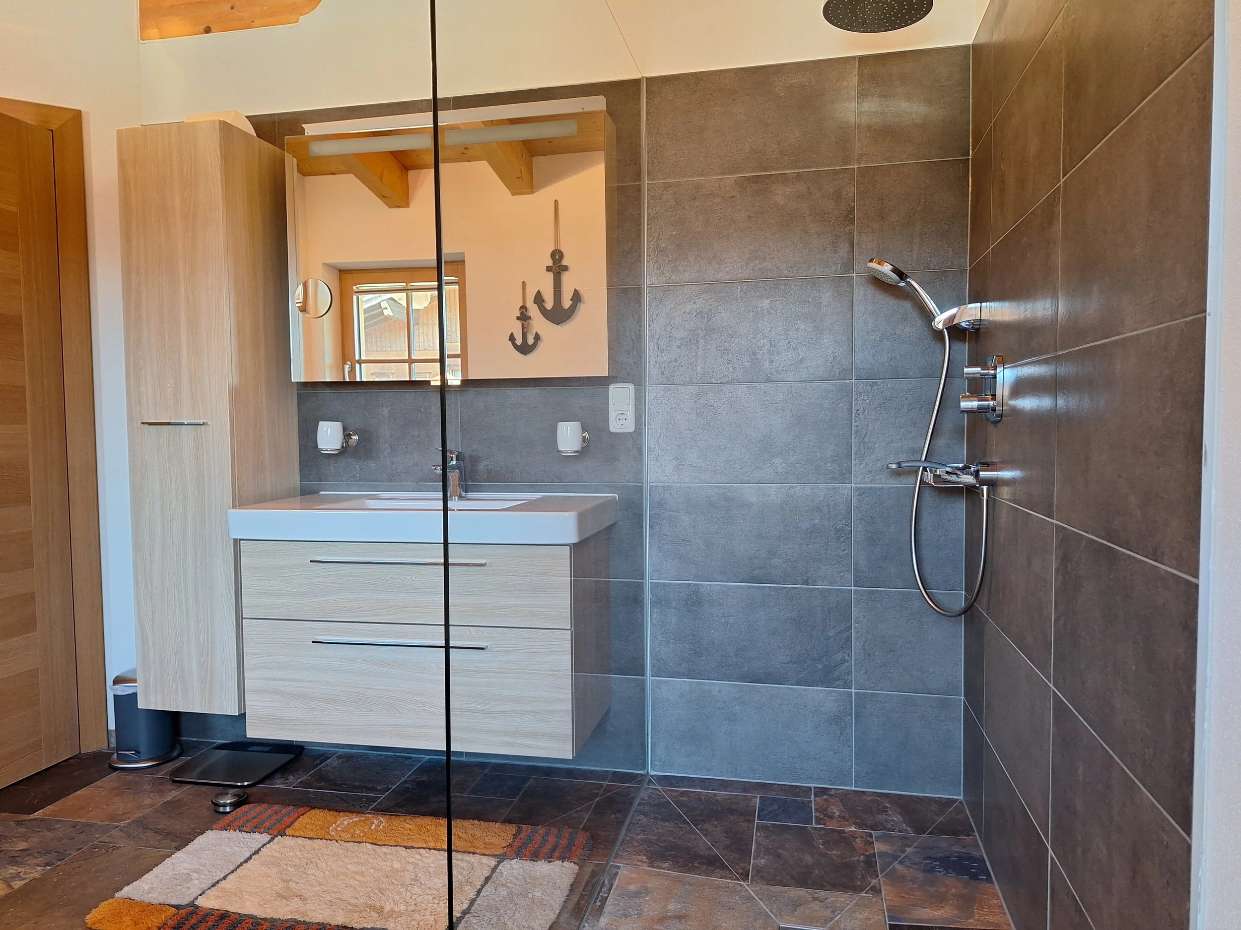 Im ersten Bad befindet sich eine Einlaufdusche, im zweiten stehen sowohl eine Einlaufdusche als auch eine Badewanne zur Verfügung.